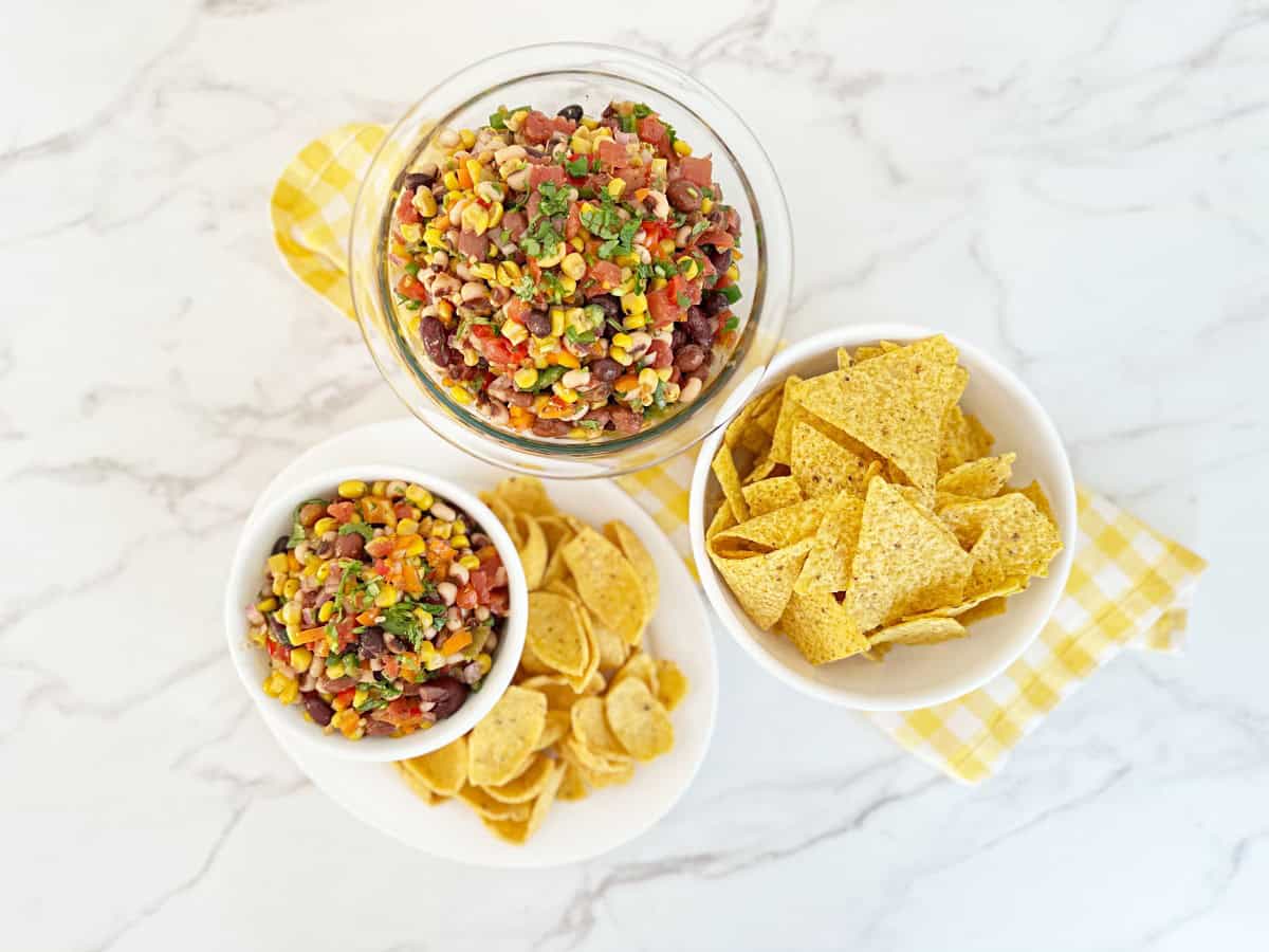 We are making this oh so popular zesty dip Tex-Mex style with a delicious taco seasoning vinaigrette and fire roasted corn. It’s a guaranteed crowd pleaser.